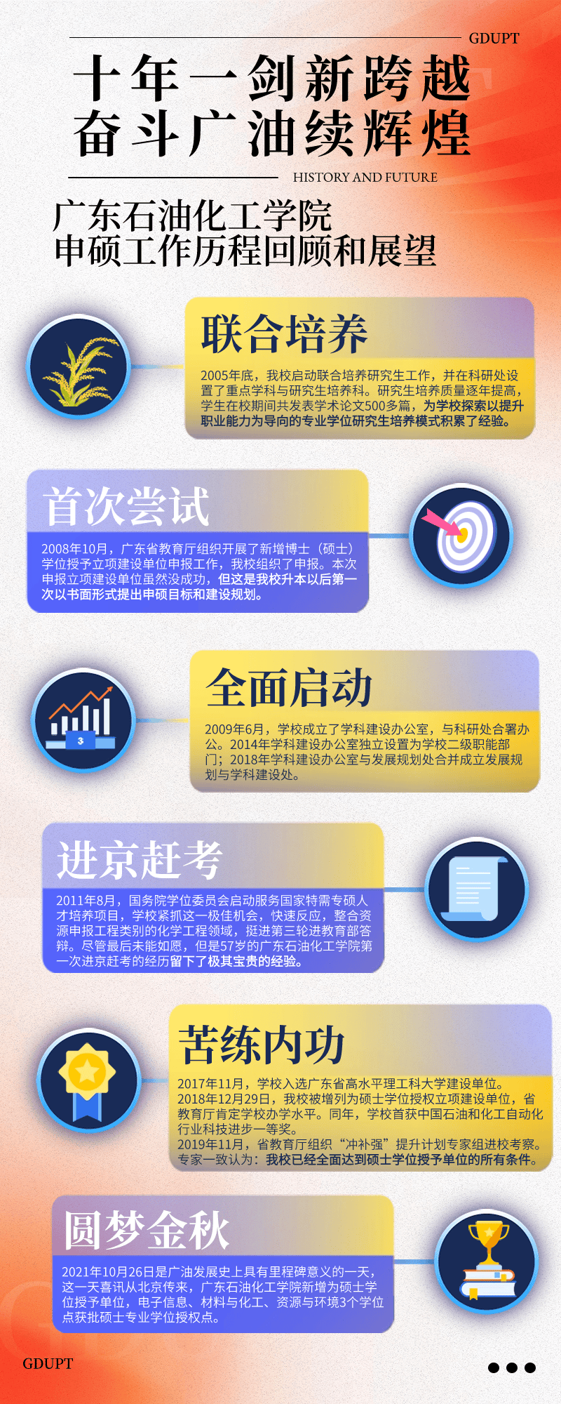 学校成功获批为硕士学位授予单元,并成为博士学位授予立项扶植单元。这是几代广油人孜孜以求的胡想,标记着学校办学条理和分析实力迈上了全新台阶。这些成就充实表白广油的学科扶植不只正在国内构成了显著特色,更迈入了国际高程度行列,为办事国度能源计谋和区域经济社会成长奠基了根本。一路来看看,让我们一路回首广油的申硕过程。