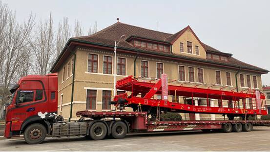 (2025年冬,中车山东机辆公司厂史馆前,一辆卡车上拆载着即将发往的高端化双层汽车运输车)。
